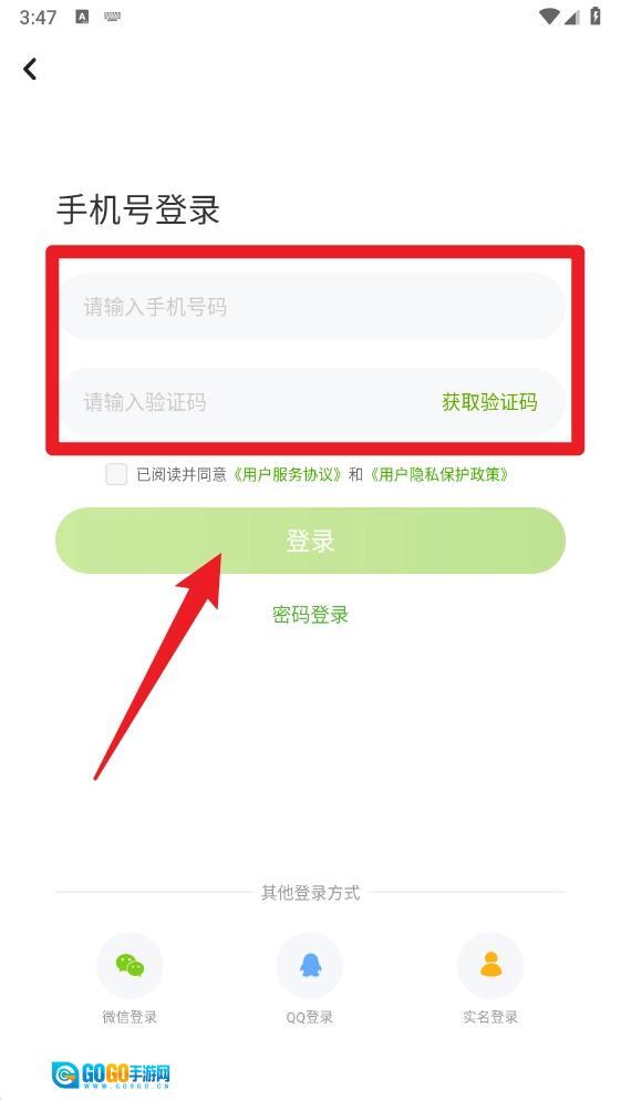 3、在登录界面输入号码并获取验证码,确认已阅读协议后点击【登录】按钮,就能快速完成账号注册或登录操作。