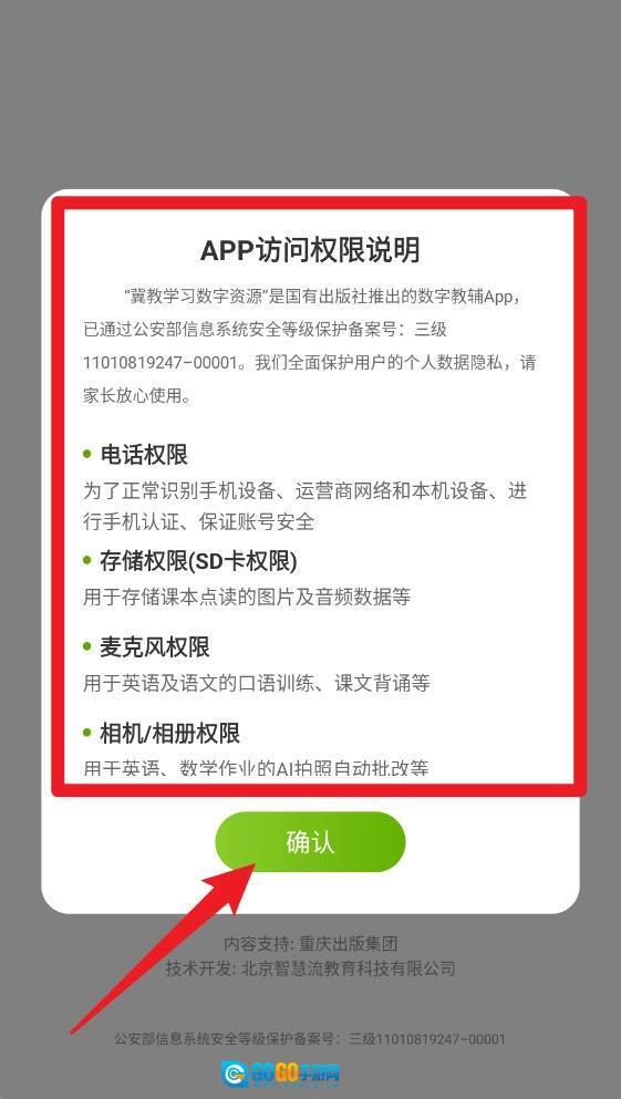 2、系统会弹出【访问权限说明】提示,其中涵盖电话、存储、麦克风及相机权限,为确保各项功能能够正常运行,请点击【确认】按钮。