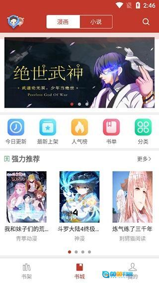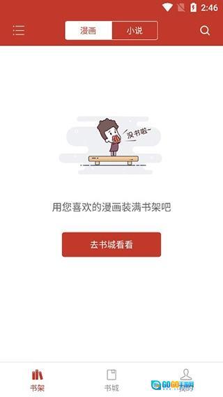 在书架当中暂时没有漫画,用户可以在书城当中寻找;