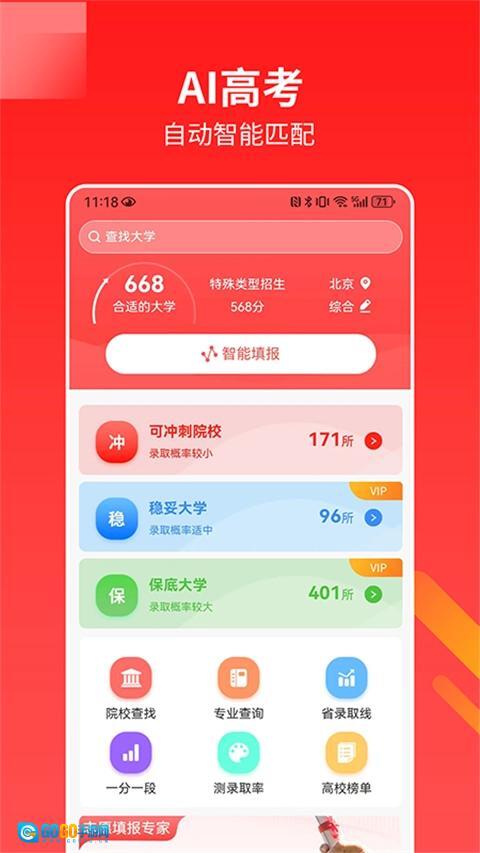 依托人工智能算法,打造智能志愿推荐功能,助力考生进入理想的大学,选择最契合自身的专业。