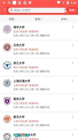 综合院校清单:您能够查询历年来2700多所院校的录取分数线、院校详细资料以及核心简介。