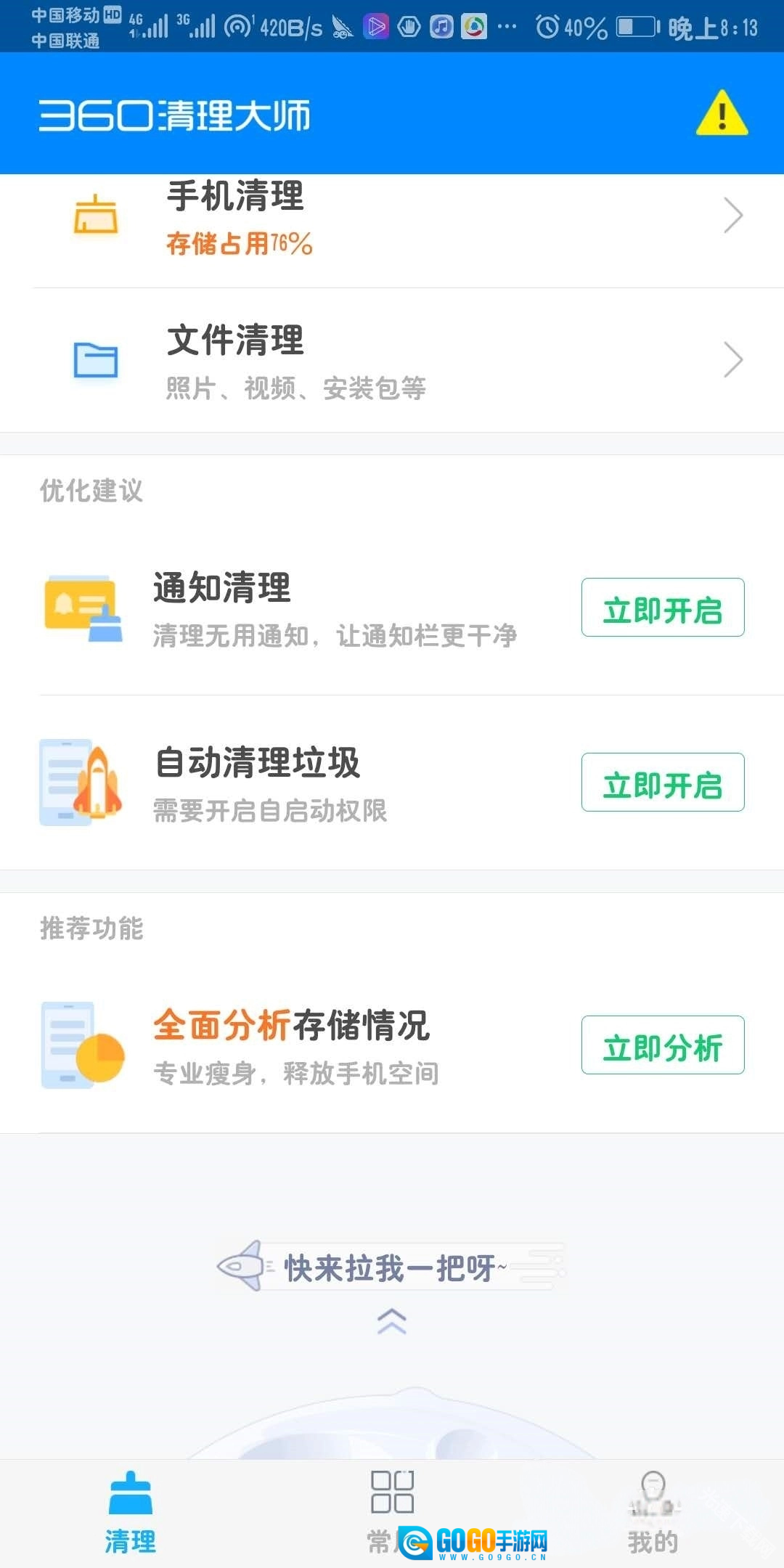 手机加速功能能够助力提升您手机的运行速度,手机清理功能可以协助您清除手机内的垃圾,文件清理功能则能够帮您清理掉多余的文件。