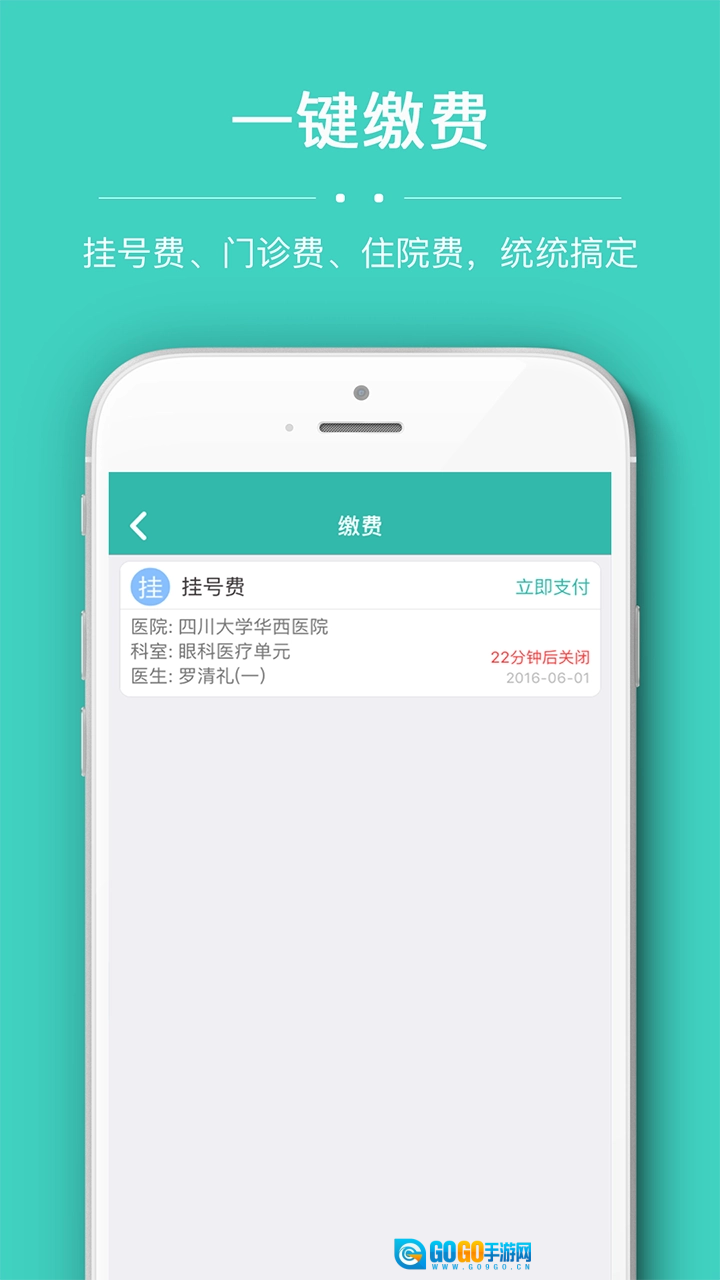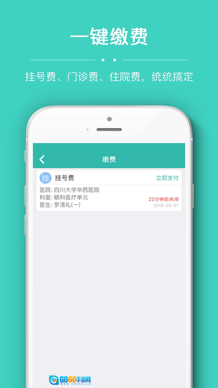 一键支付:挂号费、门诊费、住院费,轻松解决;