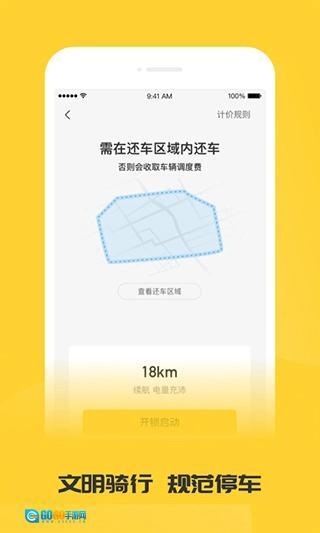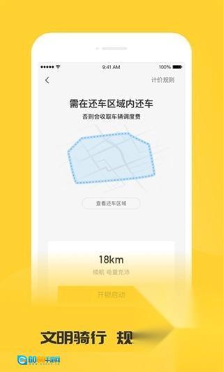 扫码开锁,自动开锁计费,预约选车,智能导航,续航实时可见。