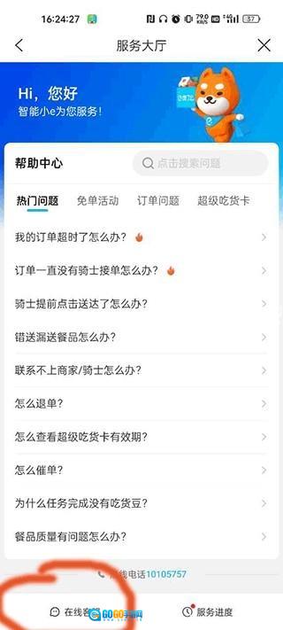 2、点击饿了么-我的-客服,里面访问饿了么登陆链接,然后复制。