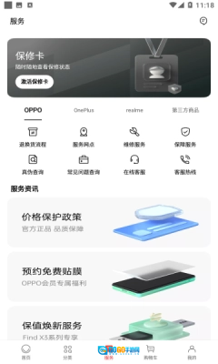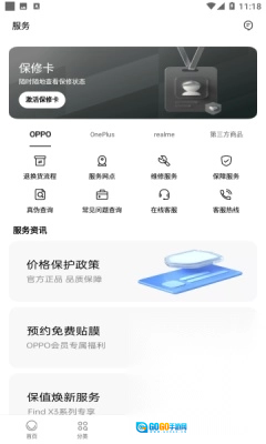 日常签到入口、手机真假鉴别、手机防护服务、售后支持;