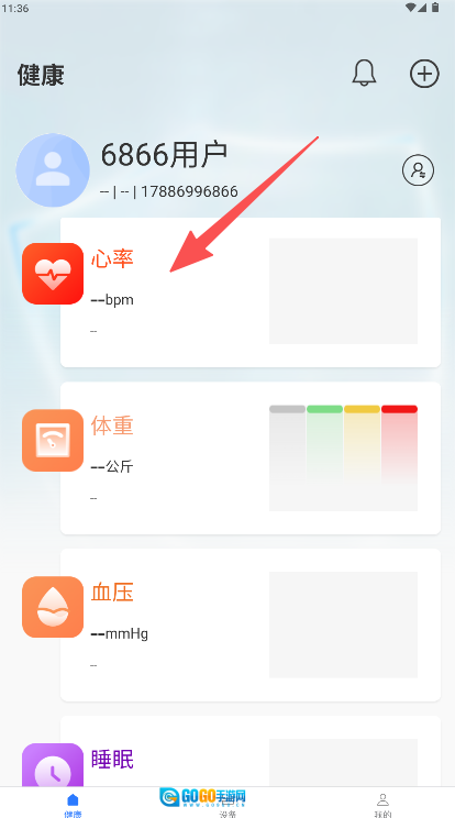 1、在软件首页找到“心率”模块卡片,点击该卡片进入心率监测页面。