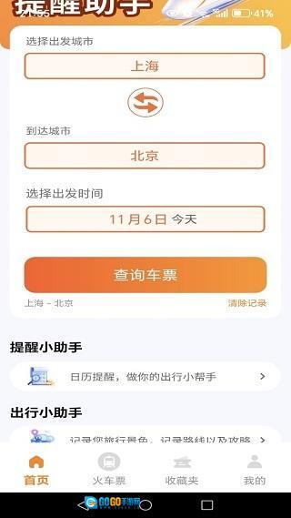 1、完成安装后进入首页,这里设有车票查询、提醒小助手、出行小助手等功能模块。