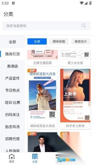 在本站找到微商海报后,进入软件并点击分类,从中挑选一个模板。