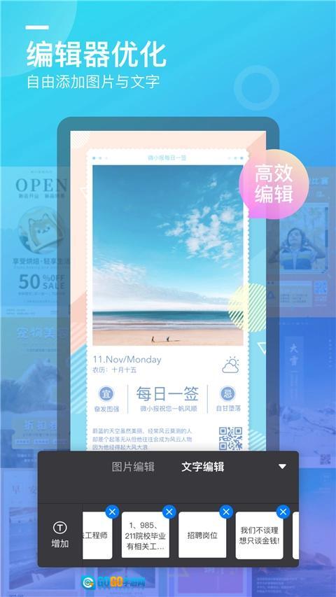 操作简单便捷,功能却十分强大,无论是编辑图片还是修改文字,只需一键即可轻松添加完成。