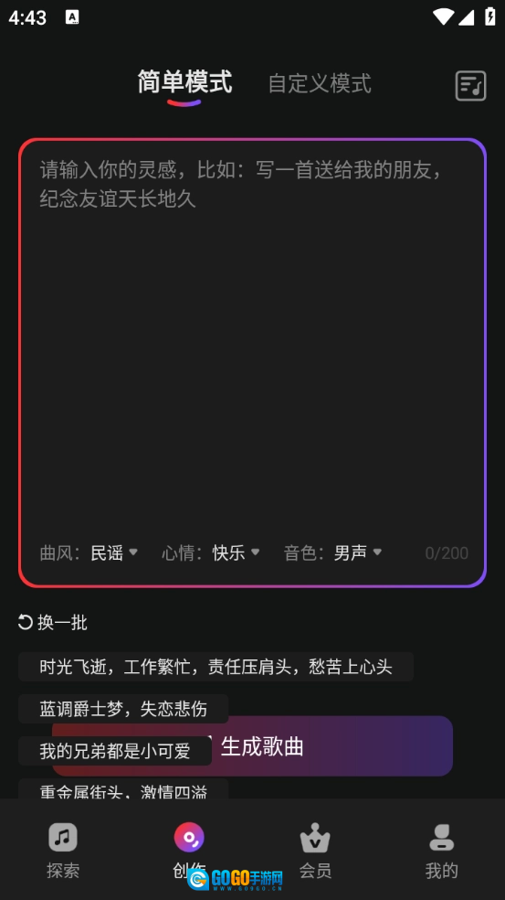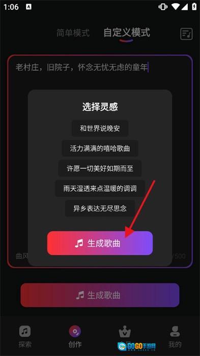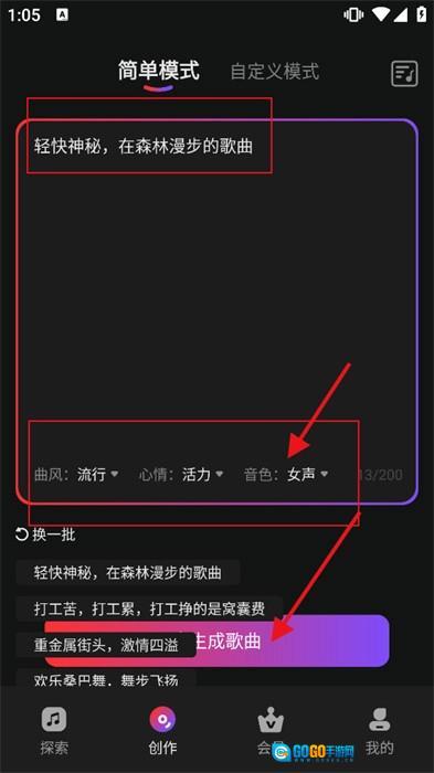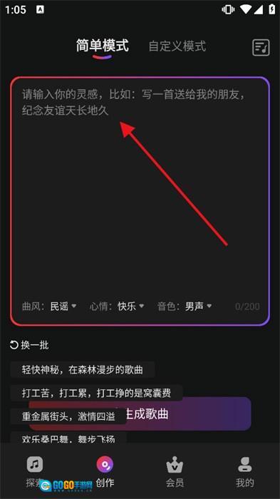 3、创作歌曲很简单,只需输入关键词和创作意向就行,而且还支持二次编辑。