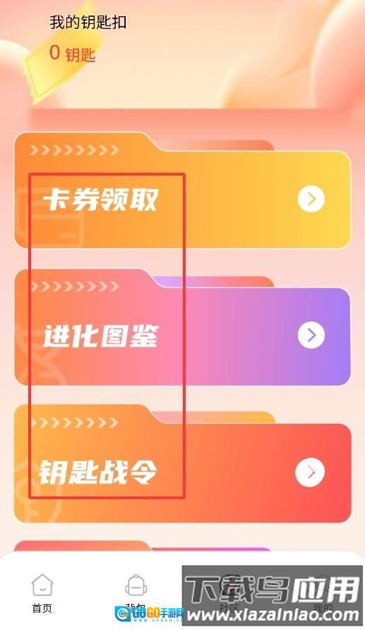 4、进入社区页面后,能够参与卡券领取、图鉴收集以及钥匙战令等各类互动活动。