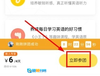 一、在芝士派英语平台若想添加课程,需前往课程界面完成购买操作,点击“立即参团”按钮进行购买后,就能将该课程添加到你的课程列表中了。