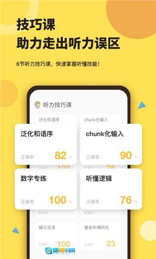 这个应用程序能为用户提供听力练习服务,用户可以在线完成听力题的练习。