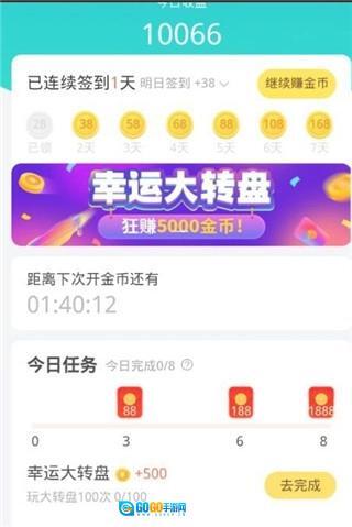 激活并启用完成后,进入应用程序的首页,在该页面中,您可以通过连续签到以及完成今日任务来获取金币。