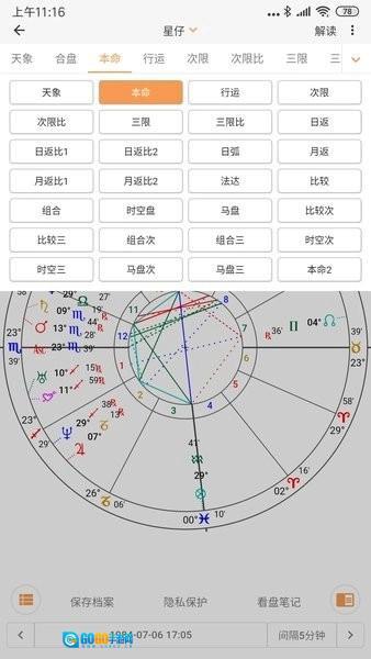 6、我们提供丰富且全面的星盘支持,涵盖了各类你能想到的星盘类型。除了大家日常接触较多的常见星盘外,还能支持泛音盘、龙首盘、小限盘、十二分盘、十三分盘、希腊小限、希腊十年、黄道释放等特色星盘。