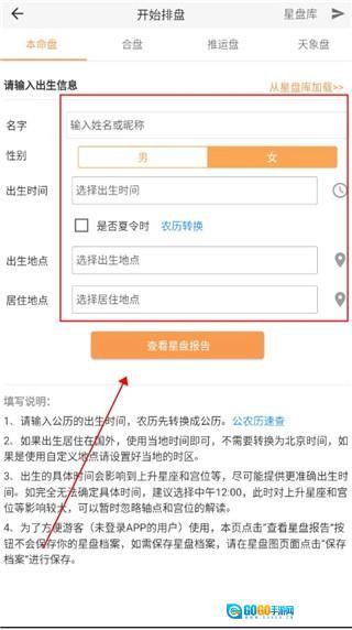 2、填写自己的相关信息,然后点击查看星盘报告。
