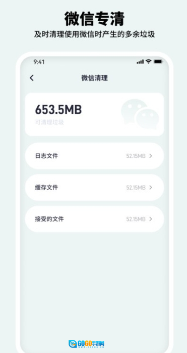 1、具备多维度的精细化清理能力,能够对微信、文档、QQ等各类应用产生的垃圾进行精准清除