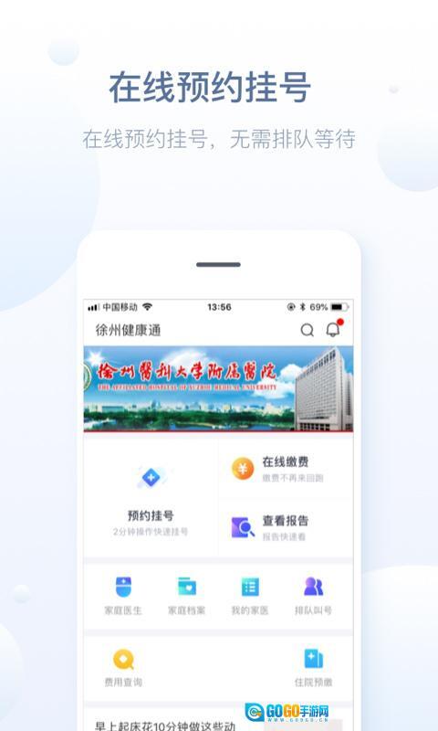 1、进入徐州健康通,进入首页,点击预约挂号;