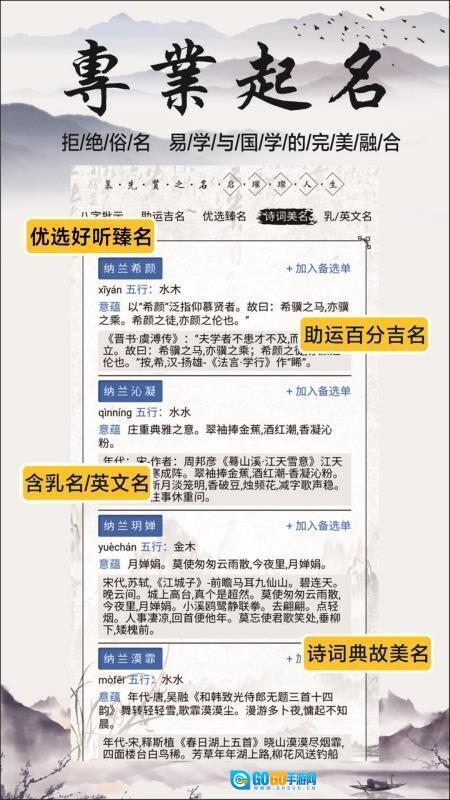 1.专业可靠:依托周易生辰八字与国学经典,为用户提供专业且可靠的起名服务。