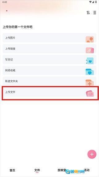 2、点击列表末尾的选项就能上传文件,此操作需要授予软件存储权限。