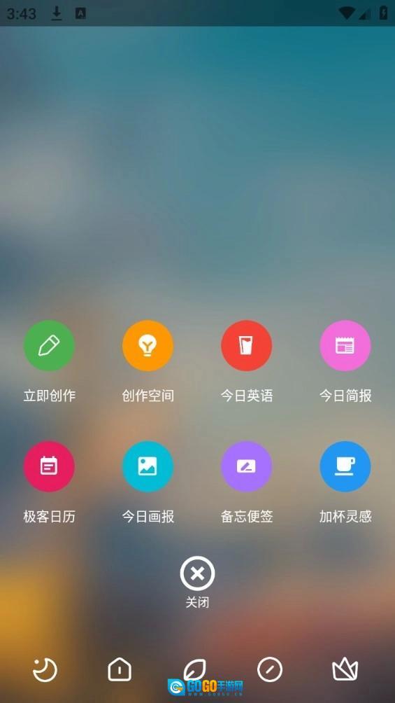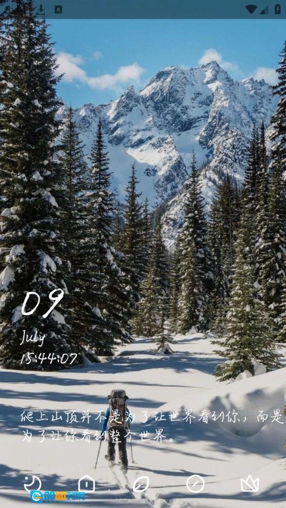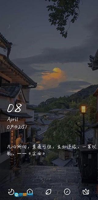 打开软件进入首页后,每次启动这里都会更新不同的短句和背景图片;你还能点击背景进入创作空间,自行进行创作。