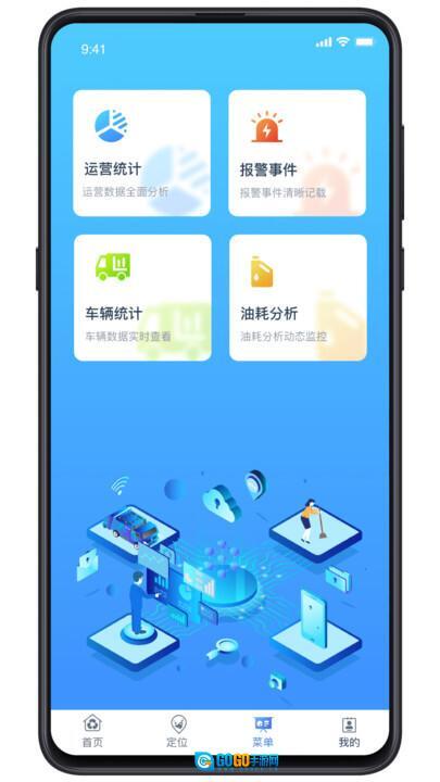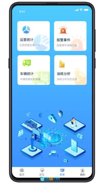 3、在菜单栏目中,能够查看整个环卫队的运行状况,还能了解车辆发生的报警事件有哪些、进行油耗分析等,这些功能全部支持一键查看!