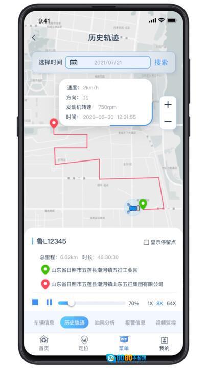 2、每一辆环卫车都能单独调出查看,车辆的各项信息均可查阅,包括当日行驶路线和油耗数据,这些内容都会直接展示出来。