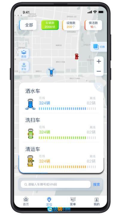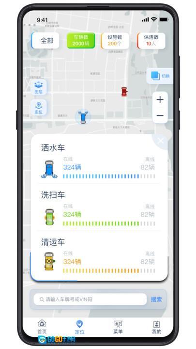 1、能够定位到各型号车辆的具体信息,像今日在线的洒水车数量、每辆车的行程路线都可在软件内查看,也能通过搜索功能找到特定车辆;
