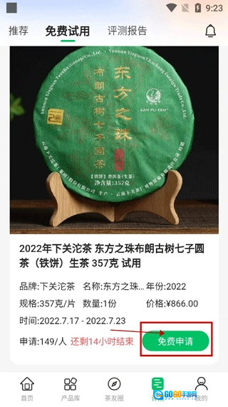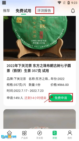 进入免费体验页面后,你可以滑动屏幕挑选想试用的茶品,右侧还能查看对应的测试报告。
