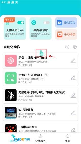 之后会出现一个小手形状的图标,你只需把它拖拽到想要点击的位置即可。