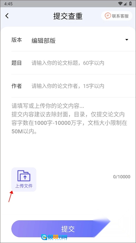 请填写论文的题目、作者信息,上传或粘贴论文内容,点击提交按钮后支付相应金额即可。