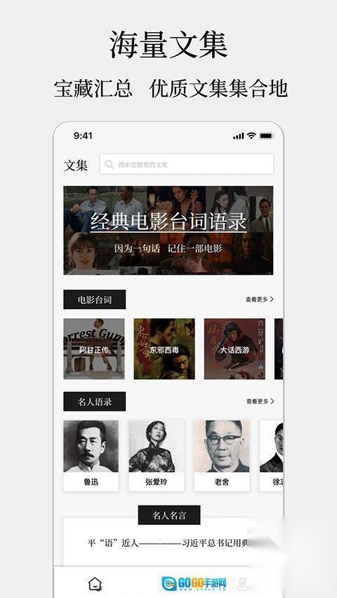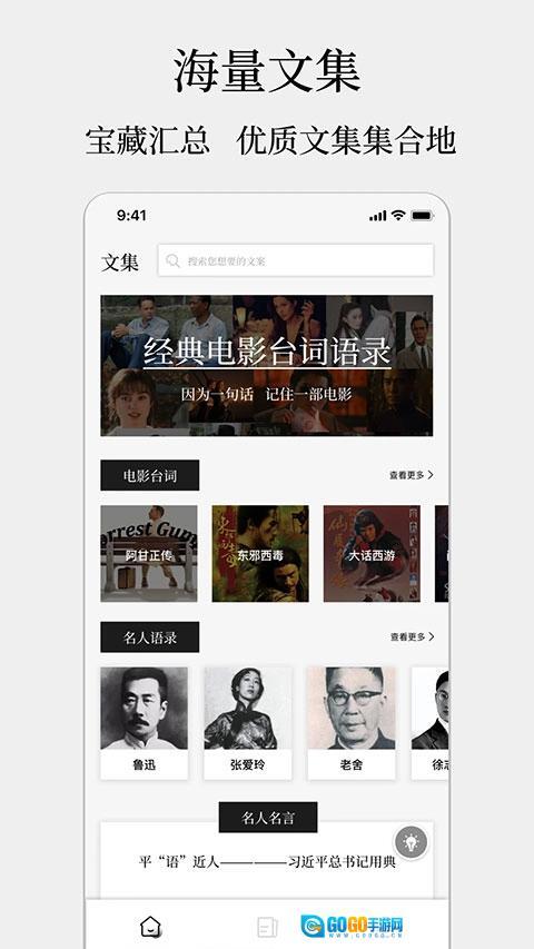 顶尖文案为用户提供了海量优质文案,用户可根据自身需求检索并获取各类美句名言,无论是自媒体创作者还是文字爱好者,这款软件都能满足你的需求。软件每日更新大量经典电影、文学作品的语录,覆盖多个维度,供用户自由摘录参考,从此无需再为构思不出好文案而困扰。另外,该软件界面简洁清爽,为用户带来超纯净的阅读体验,十分值得一试。