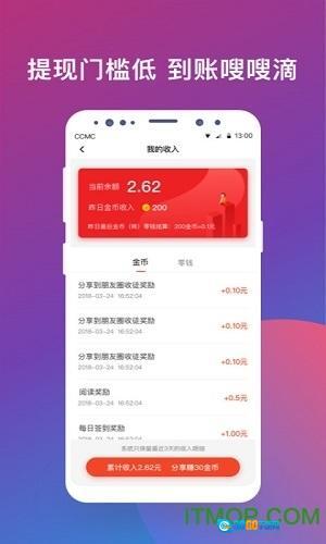 新用户注册就能获得5元现金奖励!成功邀请徒弟可立即领取13元现金,每天还能收到徒弟贡献的金币哦!大转盘抽奖、开宝箱福利、世界杯竞猜活动,各种好礼享不停!此外还有海量实物奖品、话费和流量,让你拿到手软!