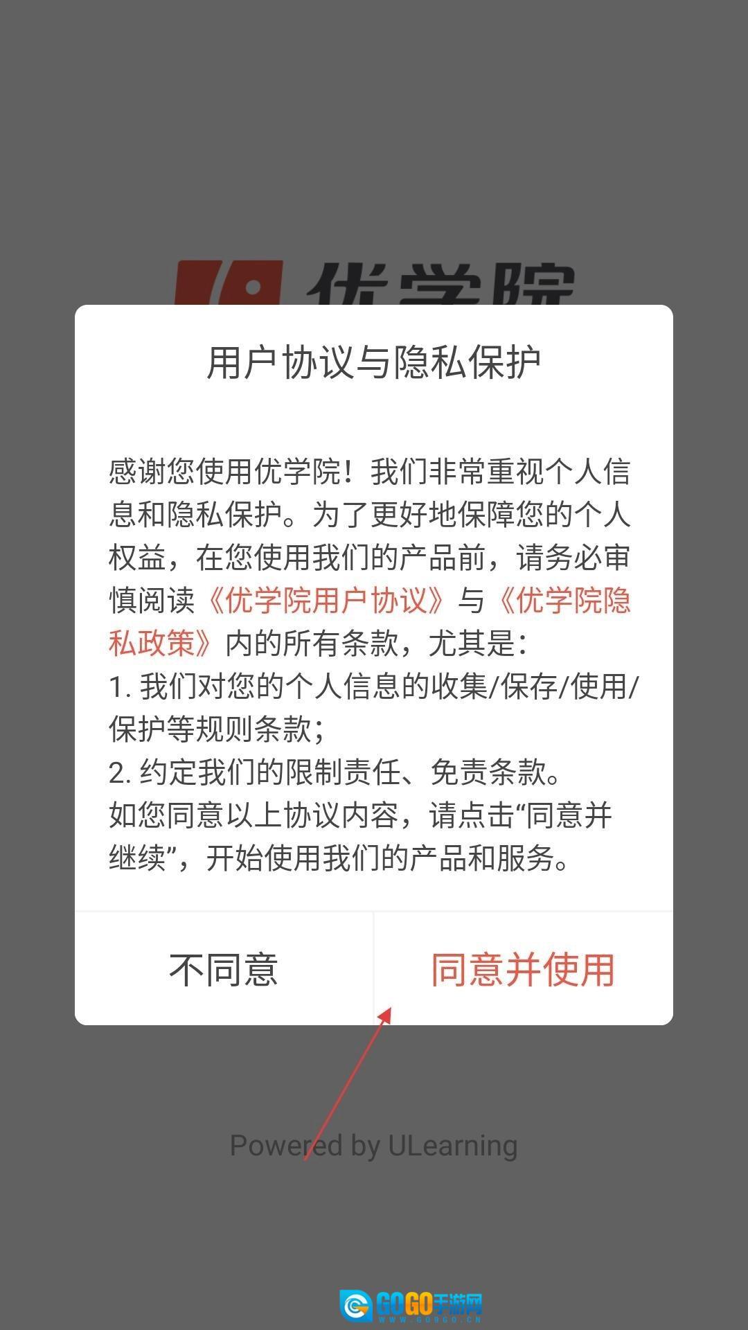 安装完成后首次进入应用时,需在用户协议与隐私政策的界面中点击同意按钮,接受相关条款后方可进入应用使用。