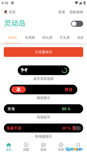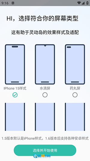 2、进入首页,选择你喜欢的灵动岛呈现方式。