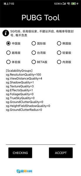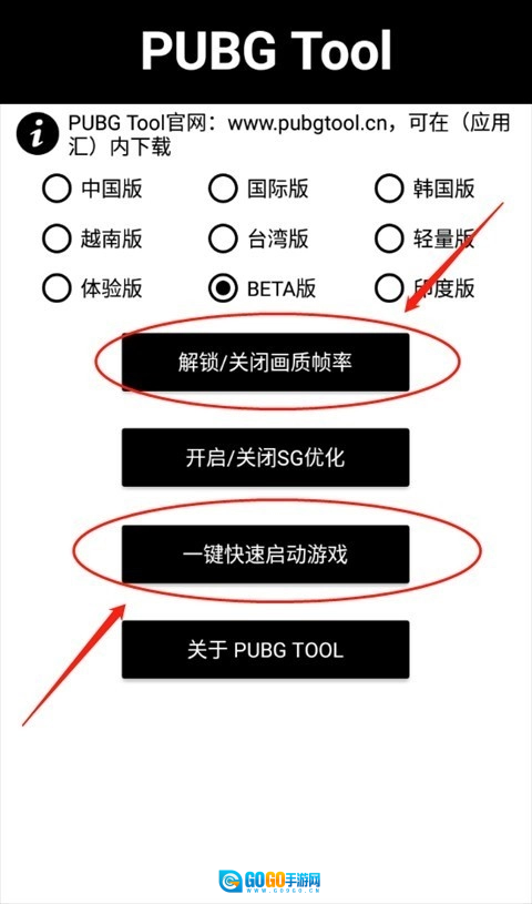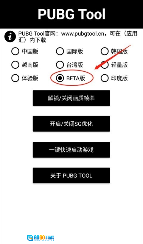 进入PUBGTool的主界面后,选择对应的PUBG版本。