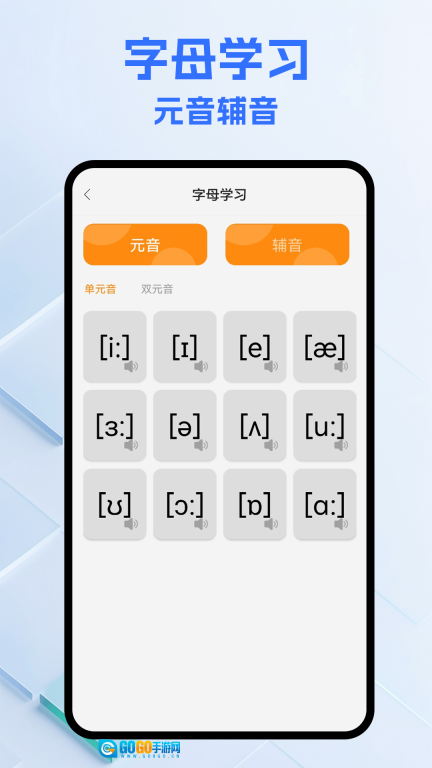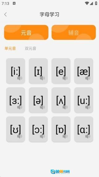 2、点击字母学习板块,可选择元音或辅音进行专项学习,让大家的学习过程更便捷高效。