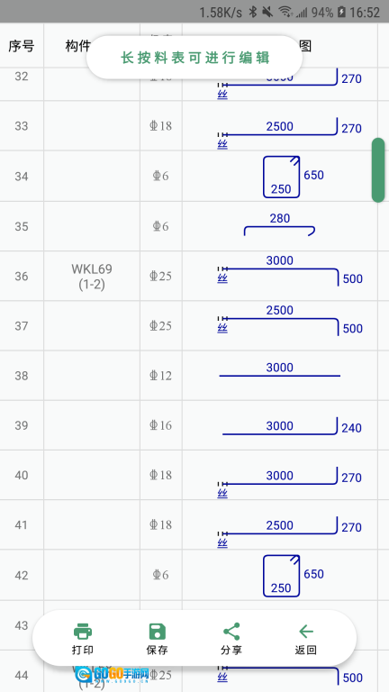 料表阅读器可对料表文件进行实时管理,不管是查看、删除、分享或是修改操作,都能在手机端便捷完成。此外,借助手机连接蓝牙或WiFi打印机,用户还能直接打印出料单、料牌和绑扎料牌,这为现场施工提供了极大便利,显著提升了工作效率。