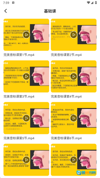 2、基础课页面里准备了不少音标课程,能让大家及时获取最丰富的学习资源。