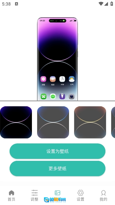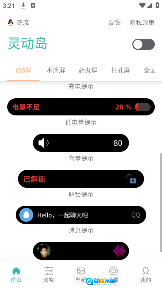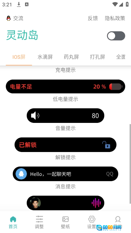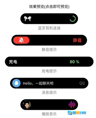 7、预览效果:点击下方不同的程序选项,即可查看灵动岛的实际展示效果。