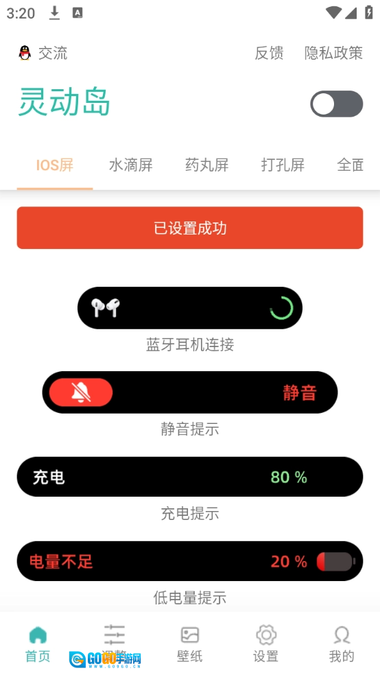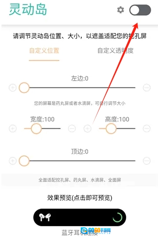 3、开启灵动岛:进入应用主界面后,点击右上角的按钮即可开启灵动岛功能。