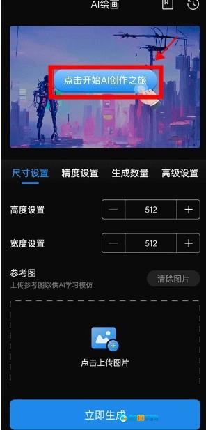 点击“AI绘画”按钮,进入绘画创作界面。