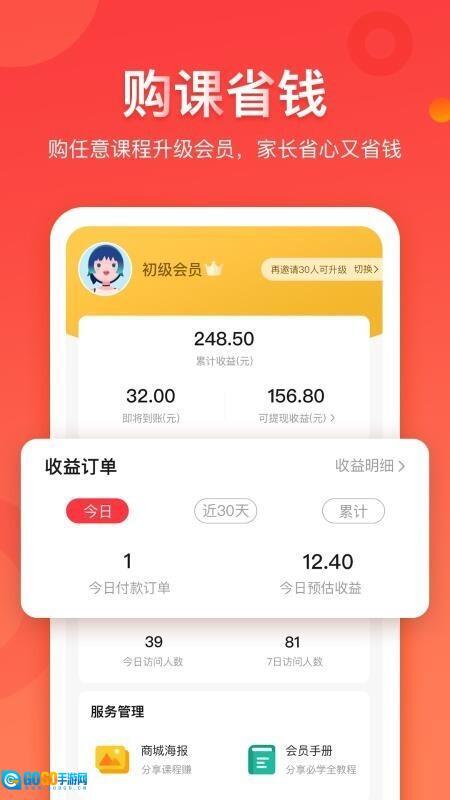 1、用户还可以邀请好友一起学习,获得相应的佣金,提供全面知识点早教教学,符合个人的期望。