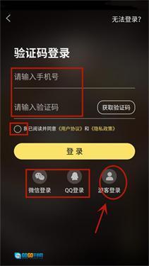 2、首次使用该软件时,你可以通过手机号接收验证码来完成注册或登录操作,另外也支持微信、QQ的一键授权登录方式;要是你想先感受一下软件功能,还能选择游客登录模式哦!