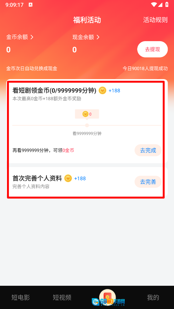 6、最后,在福利活动页面完成相应任务,即可领取对应的金币奖励。
