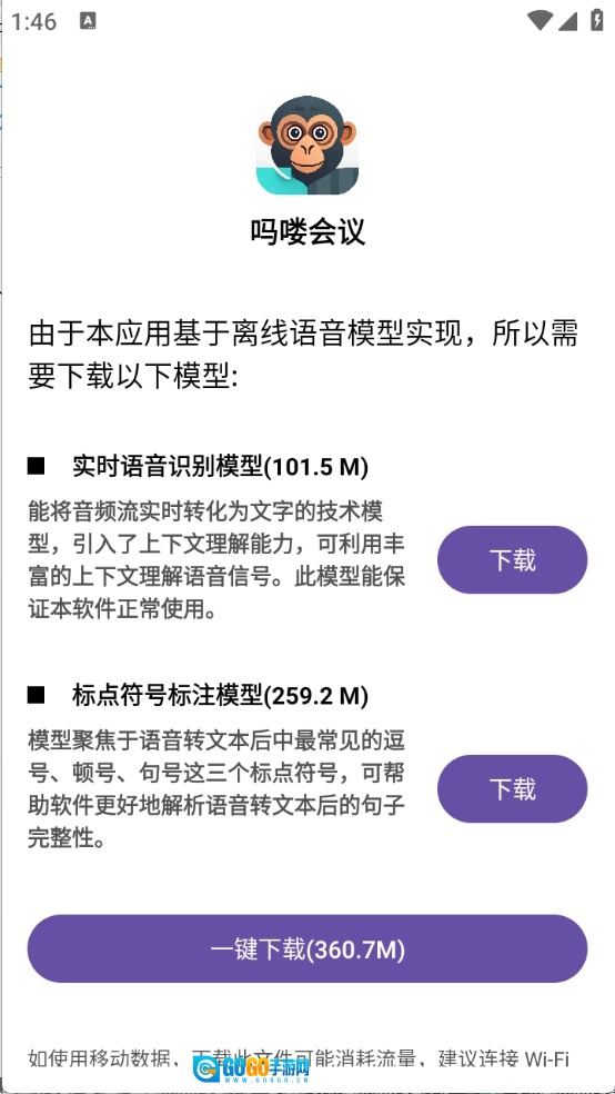 需要相关的语音模型,点击一键。