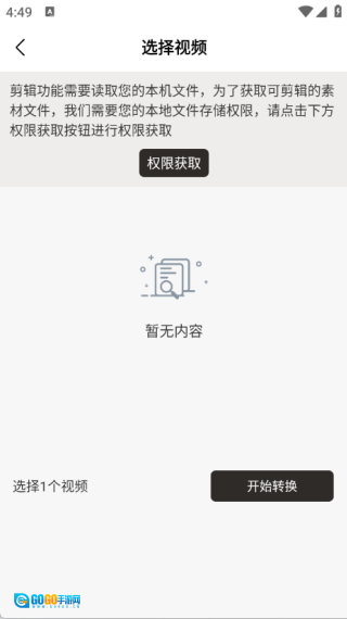 4、进入音频提取页面后,先开启获取手机音视频的权限,接着选择需要转换的音频并进行转换操作就可以了。