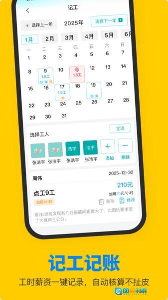 3、实用辅助工具:通过实时记录工时、留存工作凭证,直接蓝领多年面临的欠薪难题。
