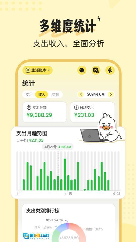 这是一款相当实用的软件。借助它,我无需采用复杂的记账方法,就能简便地完成每日的记账工作。软件的界面运用了卡通风格,再配上明快的色彩,能够很好地营造出一种轻松的使用氛围。